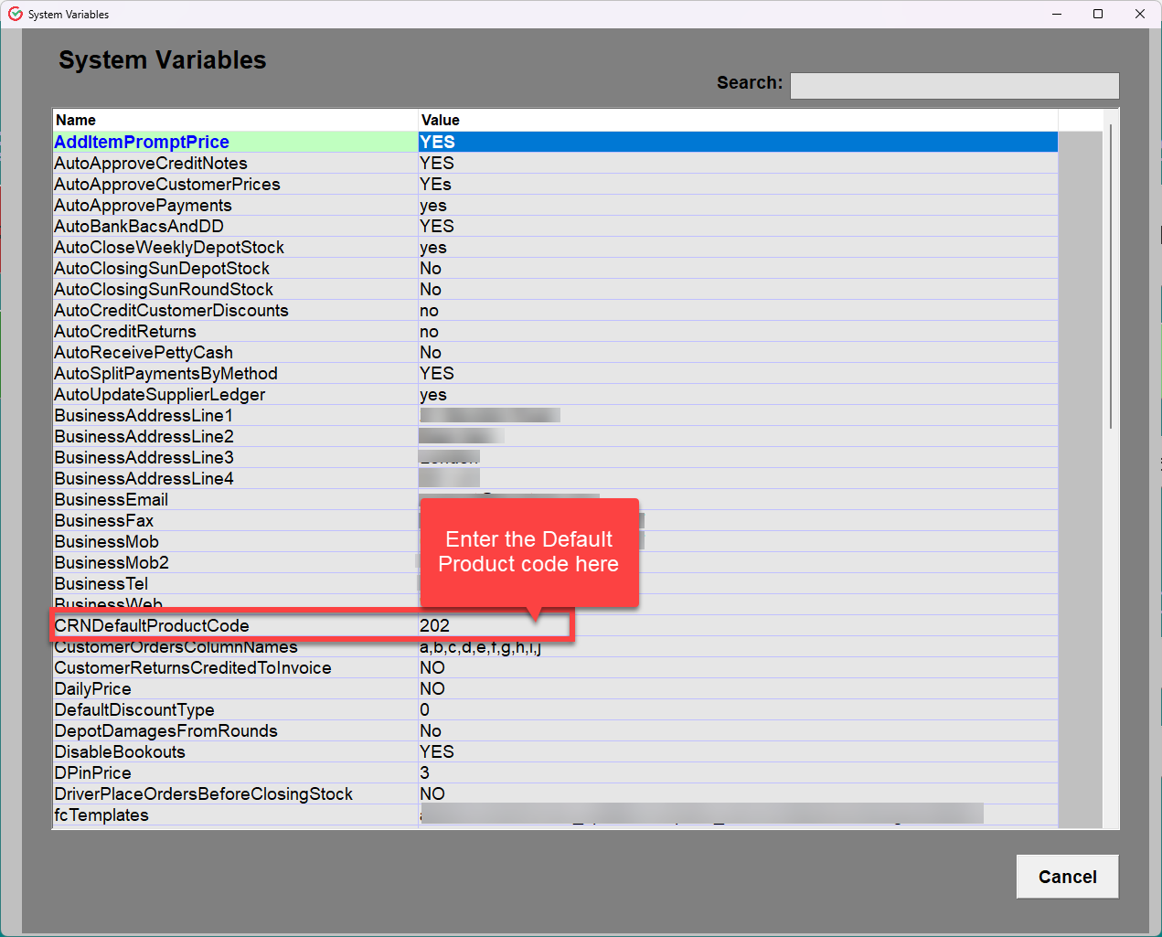 To create a Quick Credit Note, you must first set a default product code in the system variables under CRNDefaultProductCode.